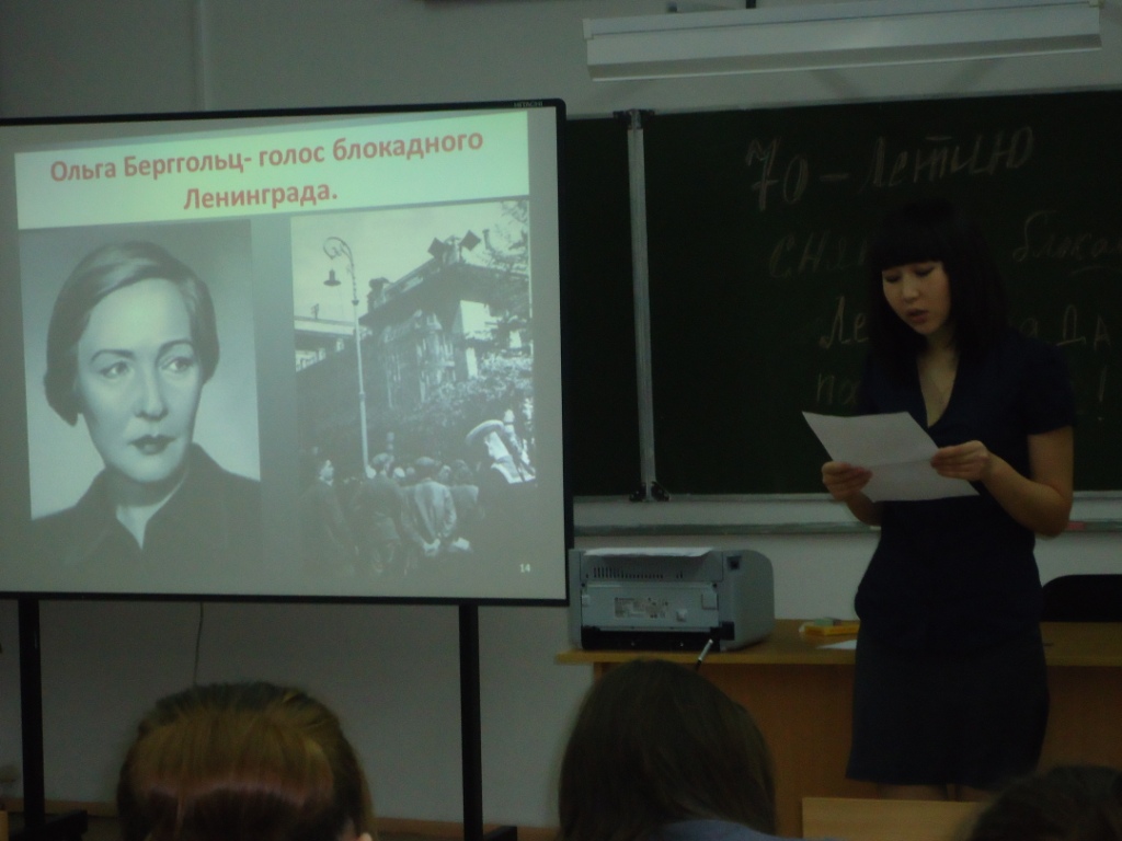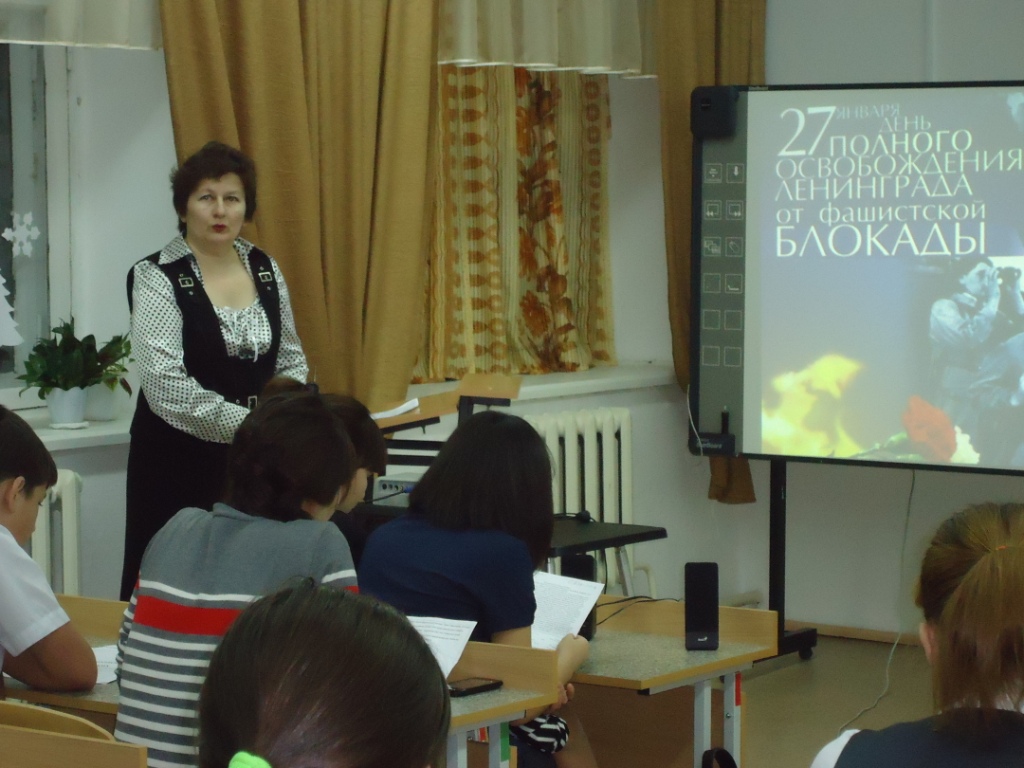 В школе прошел «Урок мужества», посвященный 70- летию снятия блокады Ленинграда. Учащиеся, познакомились с событиями начала Великой Отечественной войны, сражениями на подступах к Ленинграду, выступили с сообщениями об этих исторических событиях, внимательно смотрели презентацию и отвечали на вопросы.