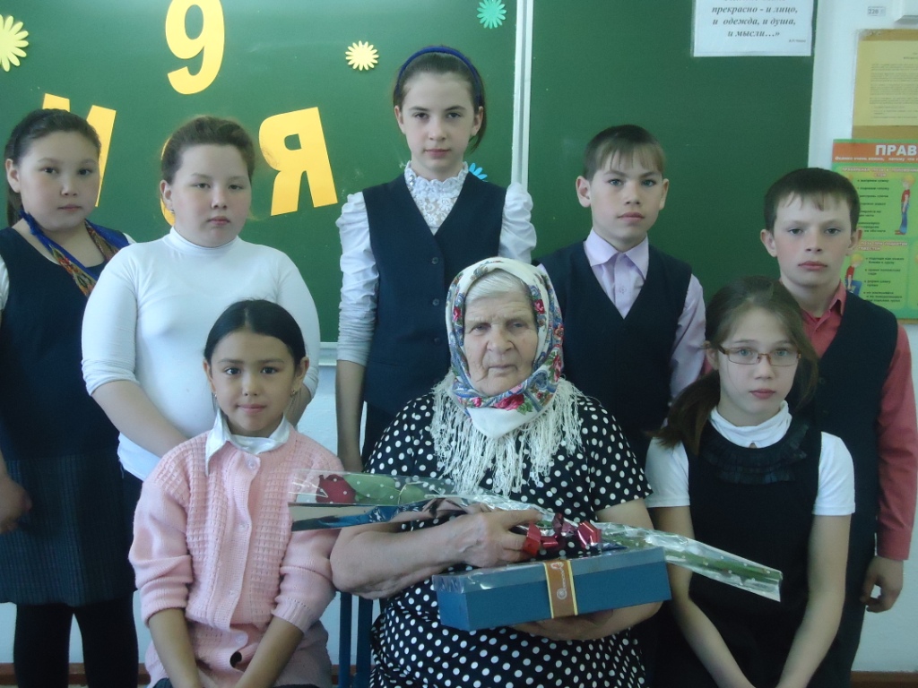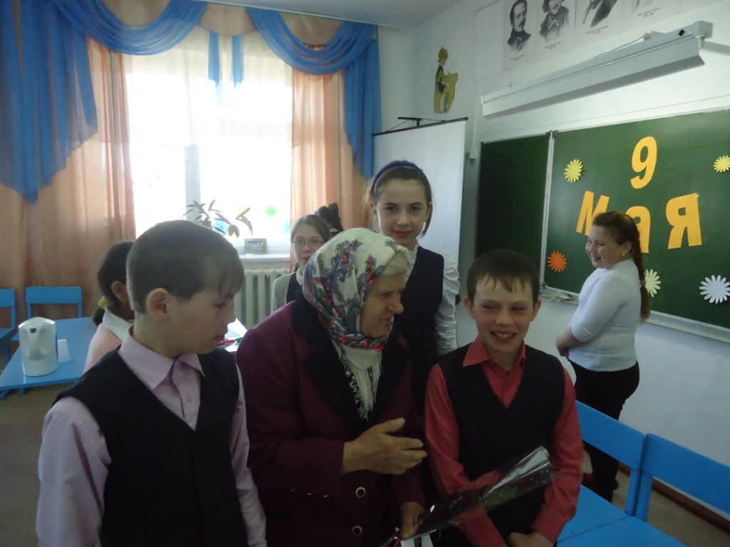 08.05.2014 классный руководитель Матаева Л.Г. и учащиеся 5 класса пригласили труженицу тыла Кох А.Е. на классный час «Они ковали победу!».