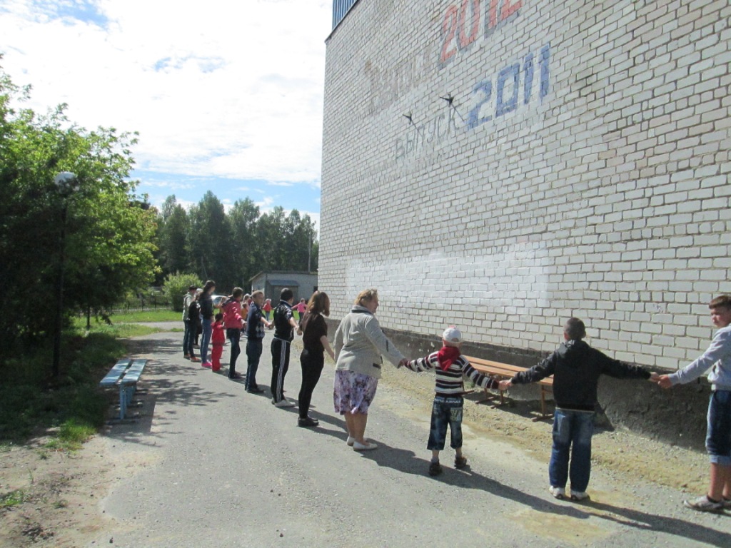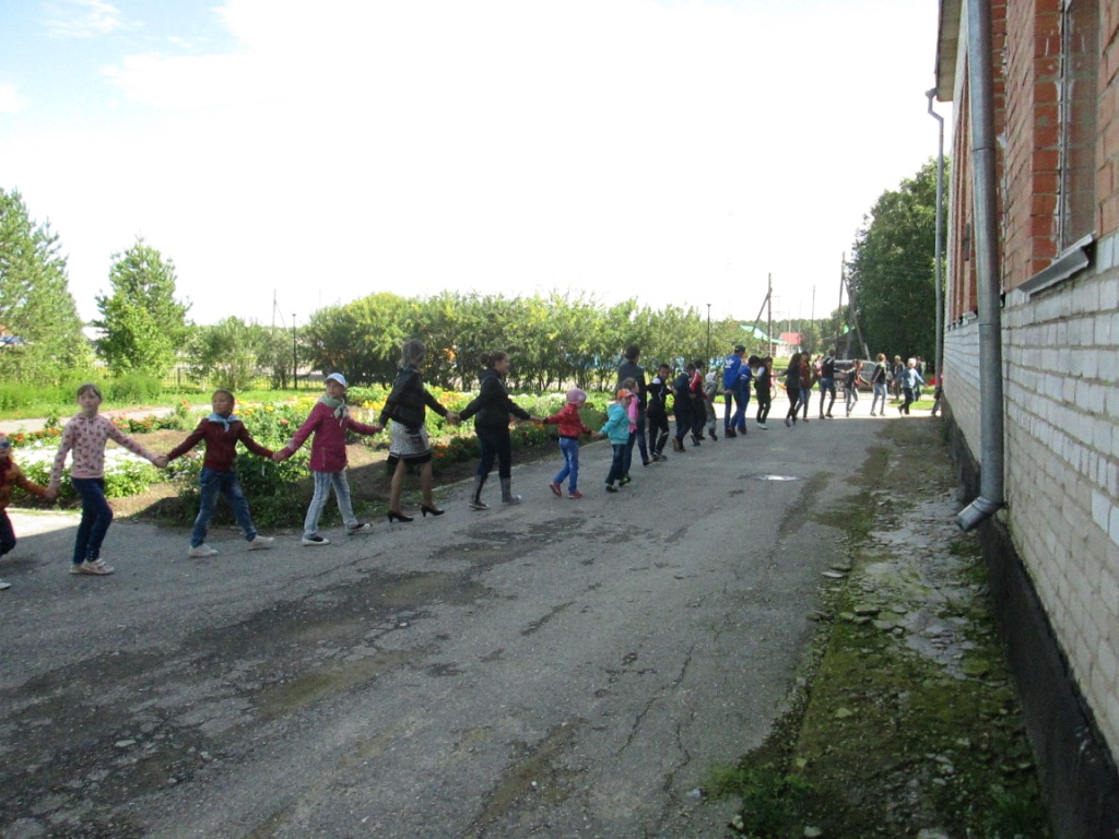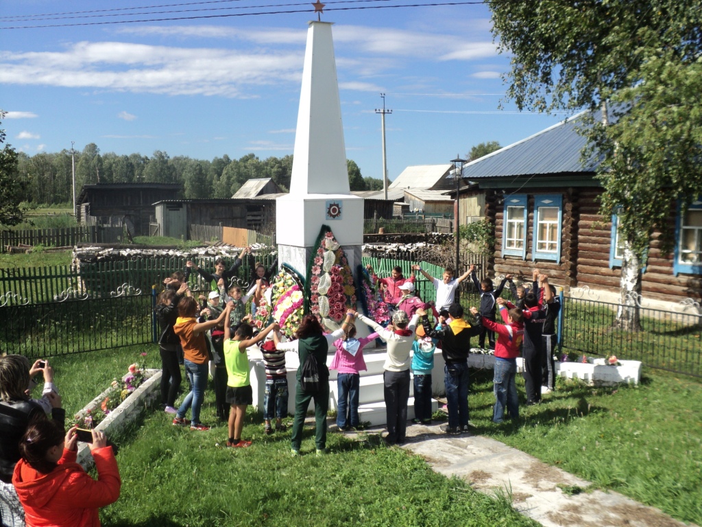 - в молодёжном флешмобе «Давайте обнимем область» построившись в цепочку вокруг школы все участники дружно обняли «сердце» села – здание школы и обелиск «Павшим в боях за Родину»;