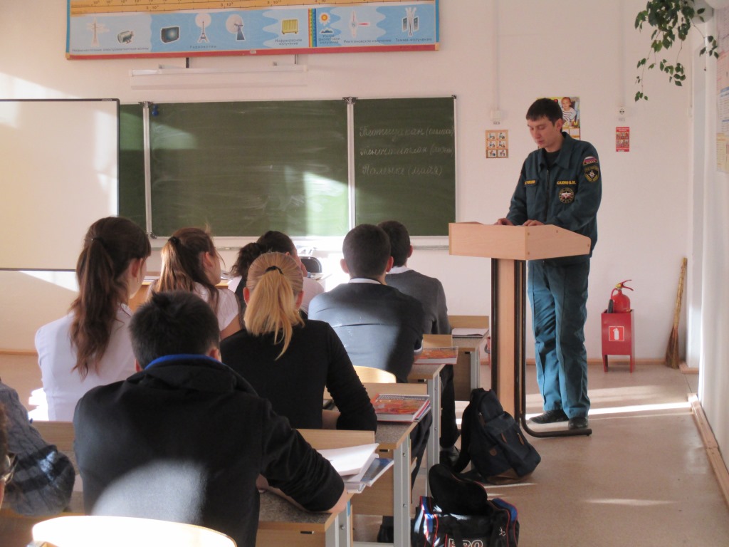 Профориентационную работу со старшеклассниками провел сотрудник ФГКУ «27 ОФПС по Тюменской области» Сахно Б.В. с целью агитации поступления школьников в Уральский Институт ГПС МЧС России. Он рассказал ребятам об особенностях службы в рядах МЧС России, познакомил с вступительными испытаниями и требованиями, предъявляемыми к кандидатам.