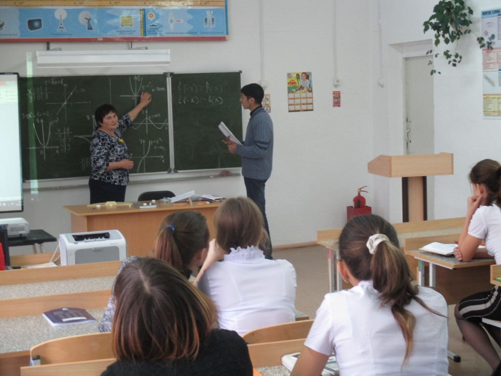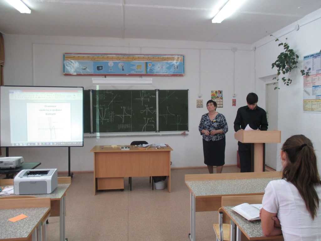 В 10 классе прошел открытый урок-семинар по алгебре на тему «Основные свойства и графики функций». На уроке присутствовали и активно работали учащиеся 11 класса. Ребята выступали с сообщениями по данной теме, с интересом работали у доски. Урок прошел оживленно, насыщенно.