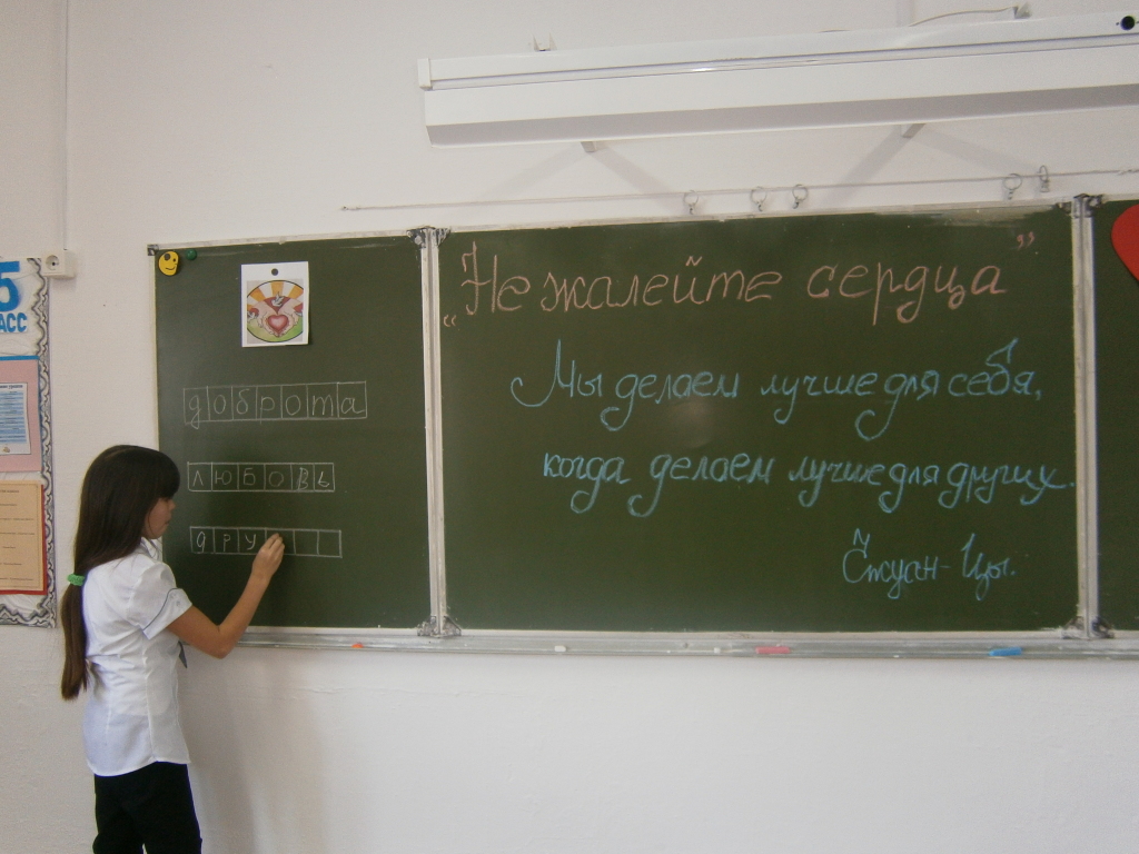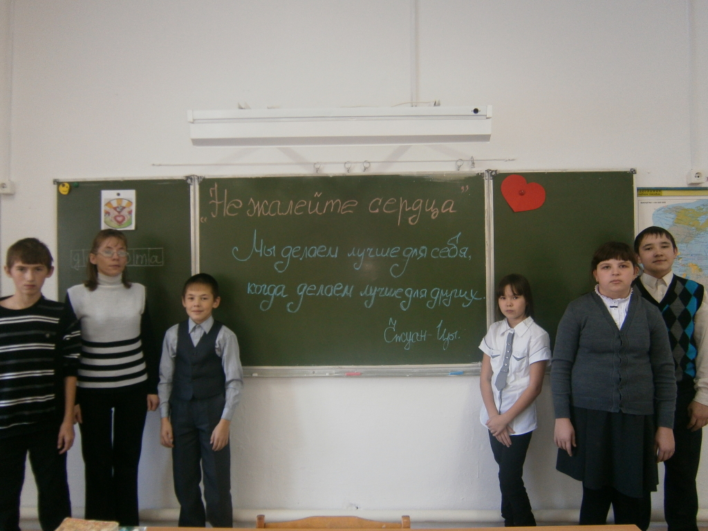 С обучающимися среднего звена библиотекарь провела воспитательное мероприятие «Не жалейте сердца». В ходе мероприятия ребятам была представлена возможность еще раз убедиться в том, что нужно быть добрыми, отзывчивыми, внимательными тем, кто нуждается в помощи.