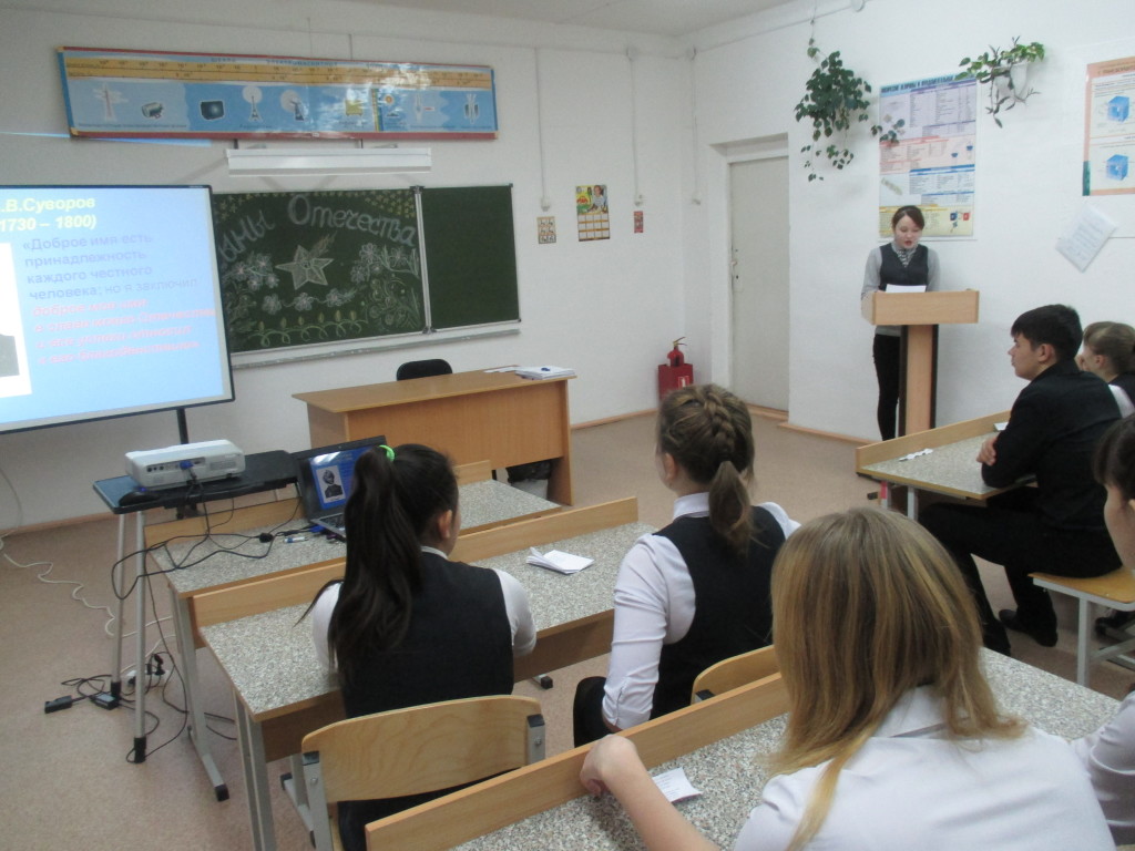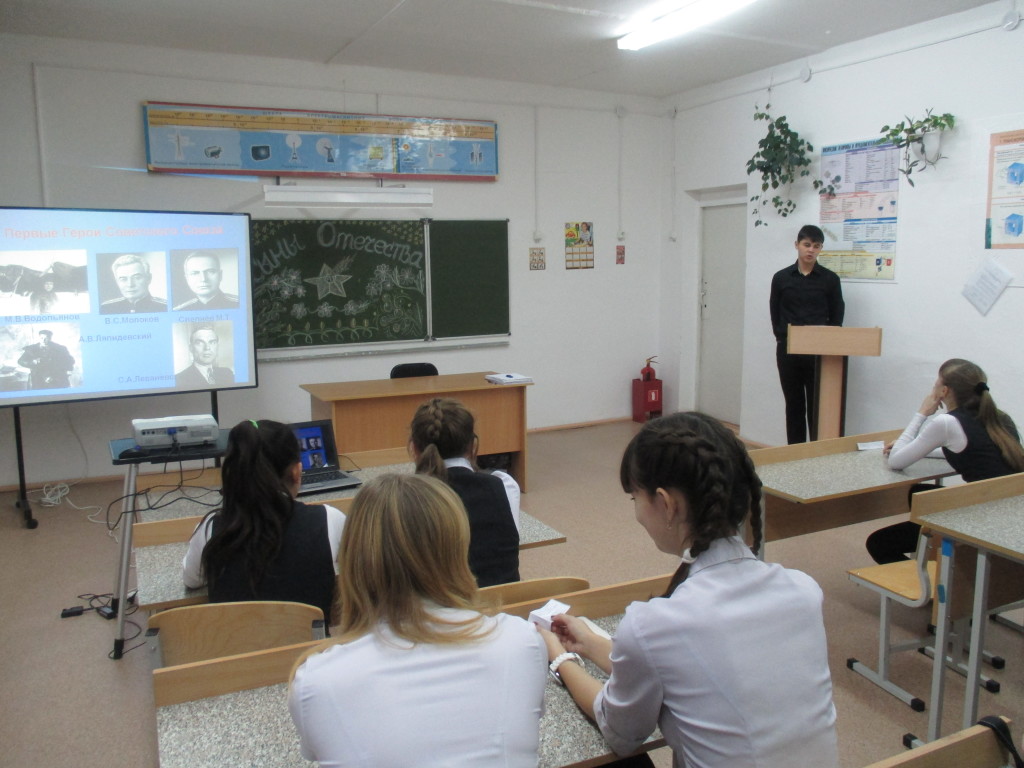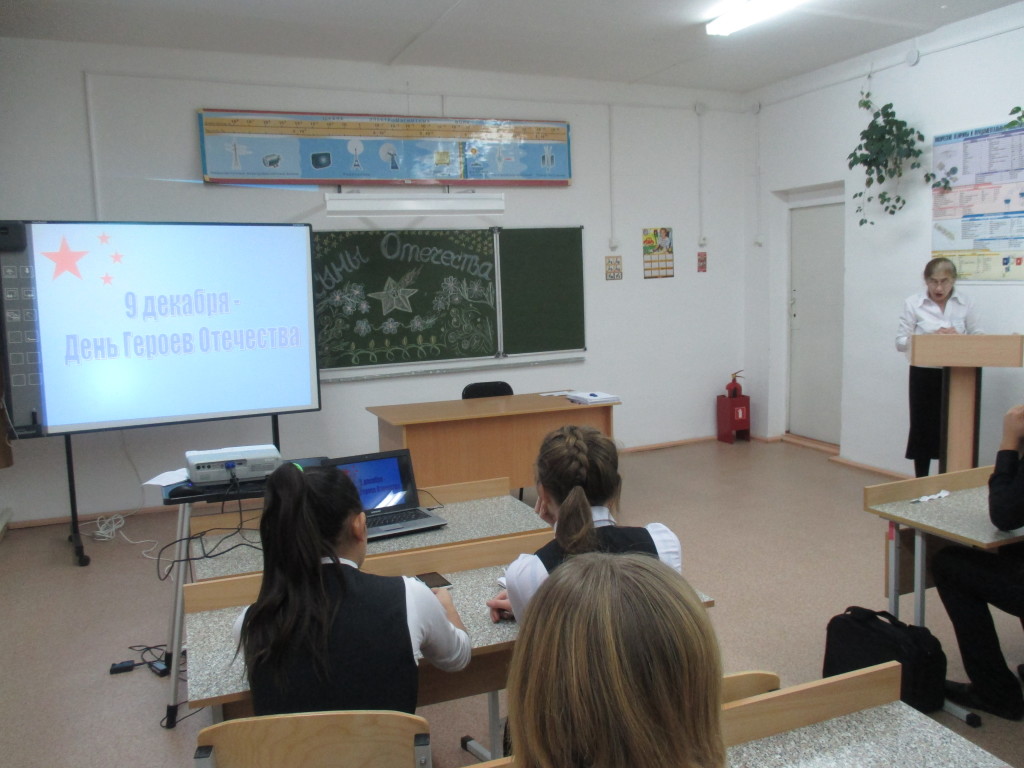 9 декабря в школе прошел тематический классный час «Сыны Отечества», посвященный Дню Героев Отечества. В ходе проведенного мероприятия обучающиеся познакомились с историей возникновения праздника, подвигами наших предков во имя независимости России. Ребята подготовили сообщения о великих полководцах, о героях Отечества в годы ВОВ, с большим интересом слушали рассказ о воинах-афганцах — наших земляках.