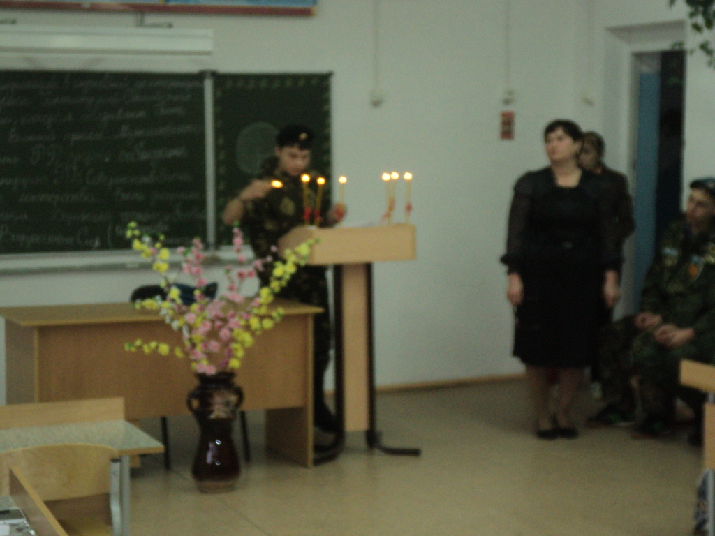В память о погибших были зажжены свечи. Каждая минута урока наполнена духом патриотизма и гордости за геров.