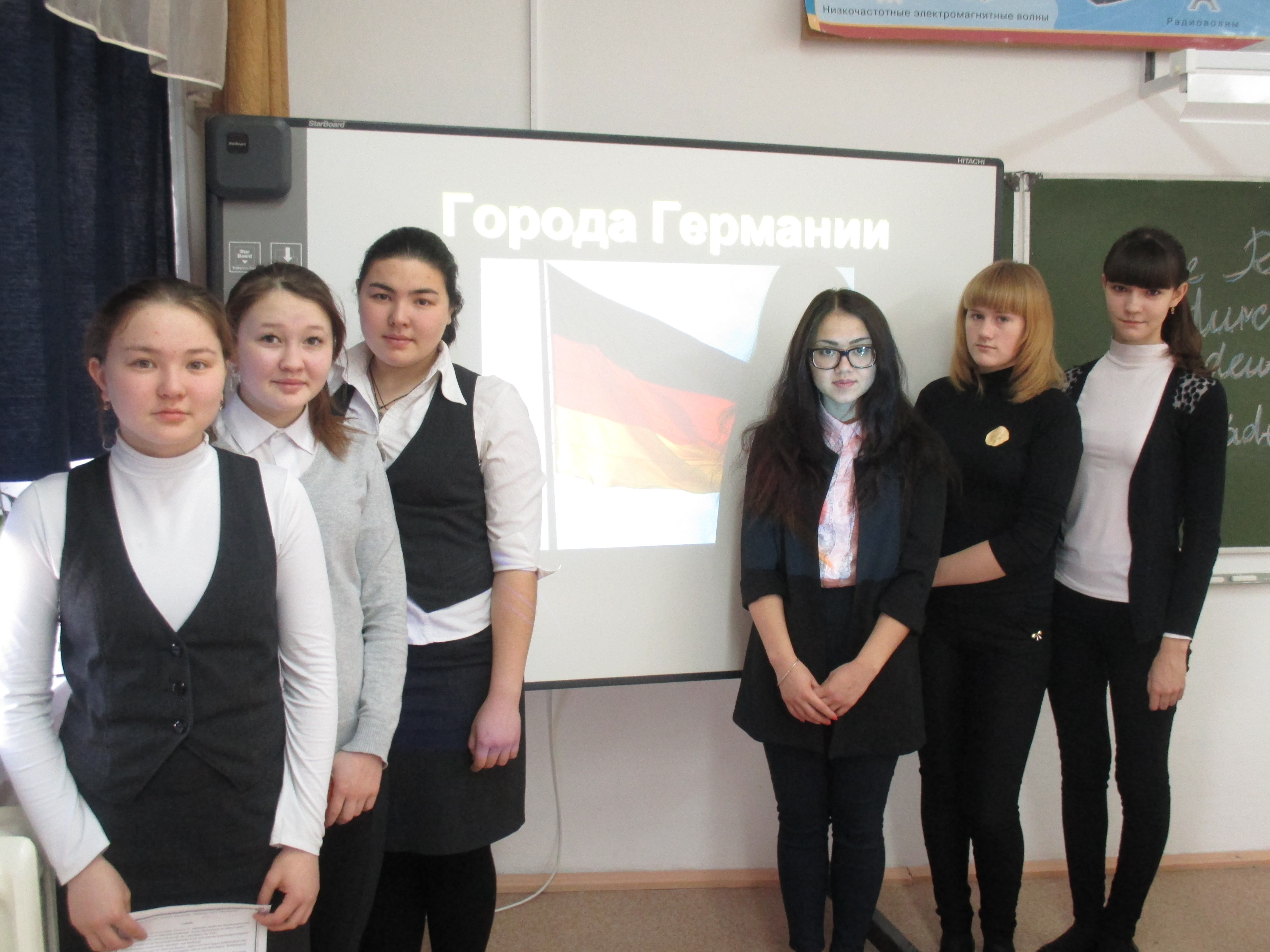 30 января, в рамках недели иностранного языка, прошел открытый классный час «Путешествие по городам Германии». Ребята рассказали о достопримечательностях, нравах и обычаях изучаемых городов.