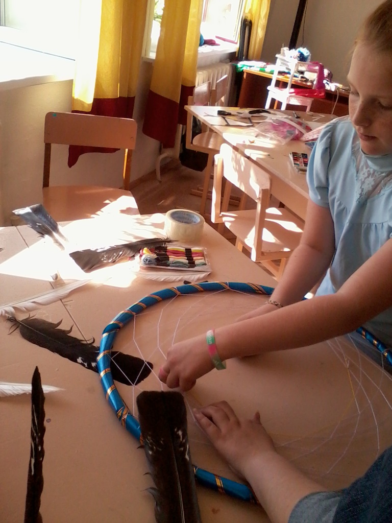 Сегодня для ребят проведен мастер-класс «Ловец снов», на котором каждый попробовал себя в создании этого индейского амулета.