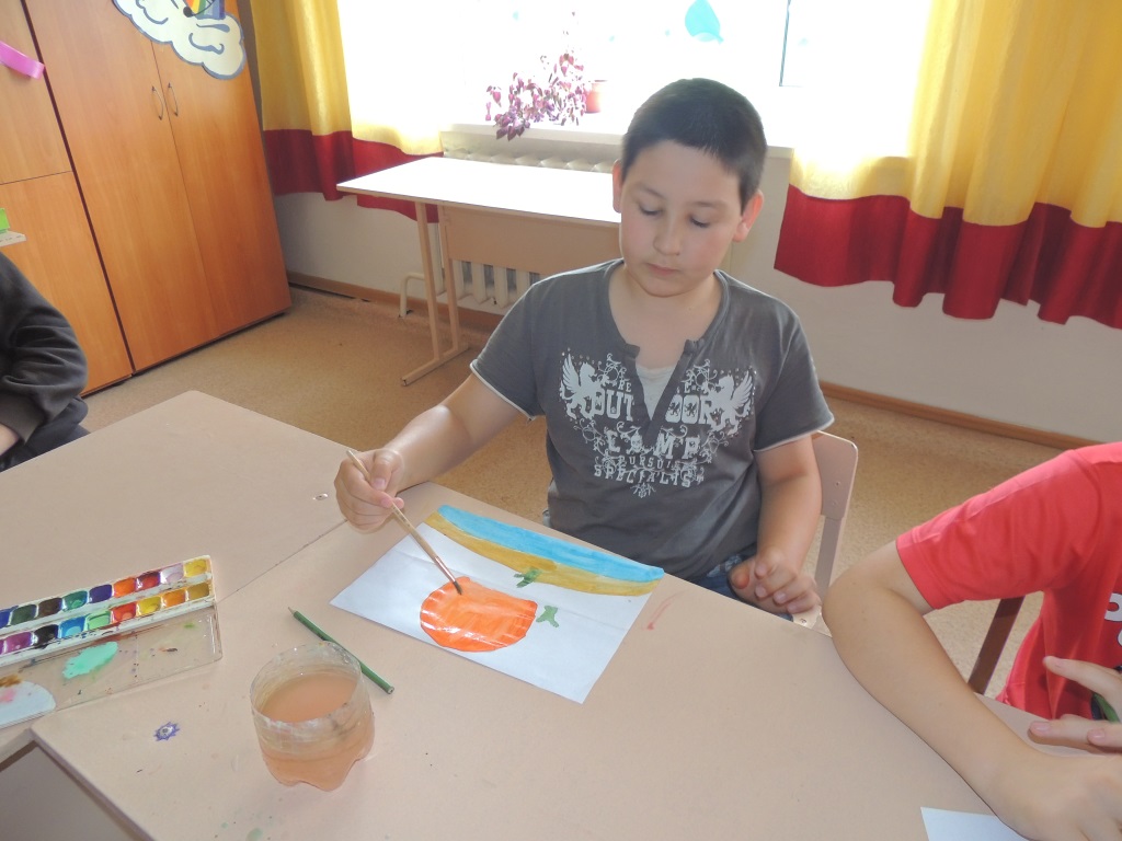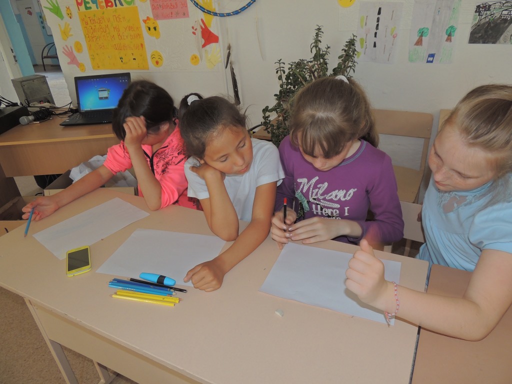 Сегодня в нашем лагере прошел конкурс рисунков на темы «Половодье в пустыне Сахара» и «Жаркий день на северном полюсе», где ребята проявили всю свою фантазию и креативность. А также работала домашняя киностудия «Фильмы своими руками» — каждый отряд нарисовал на листах кадры из сказки «Колобок» и затем их склеил.