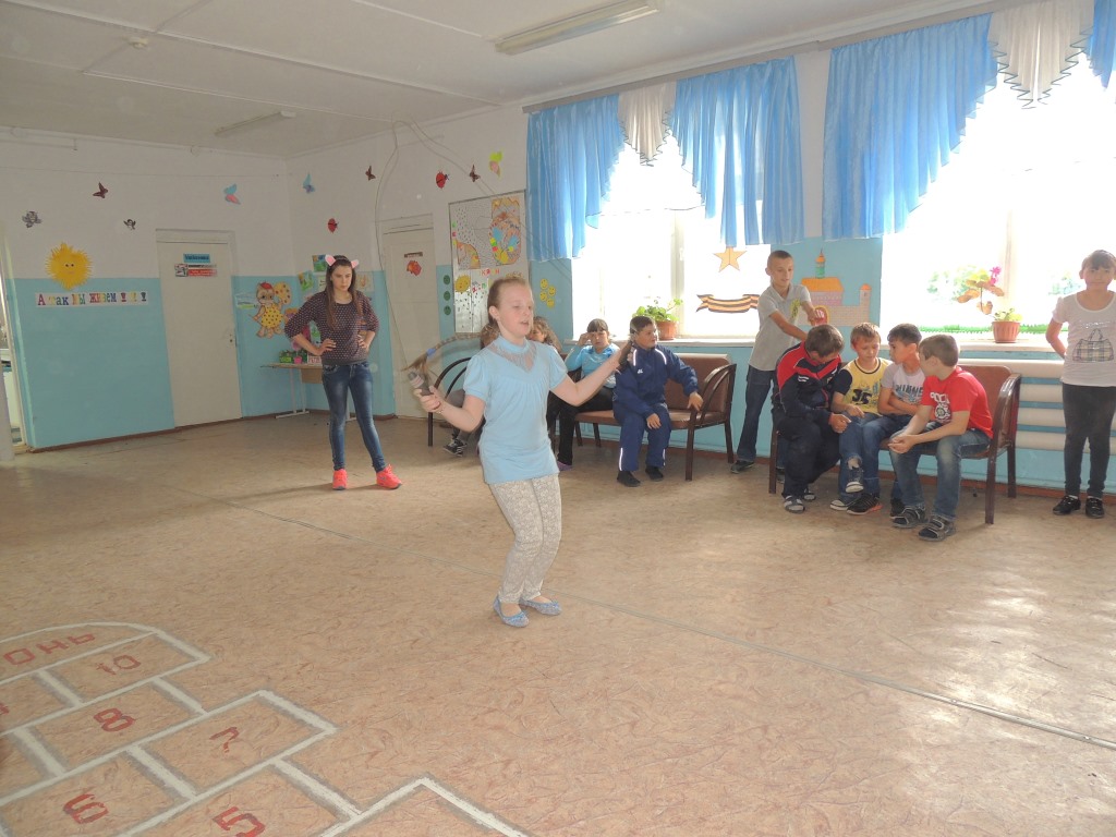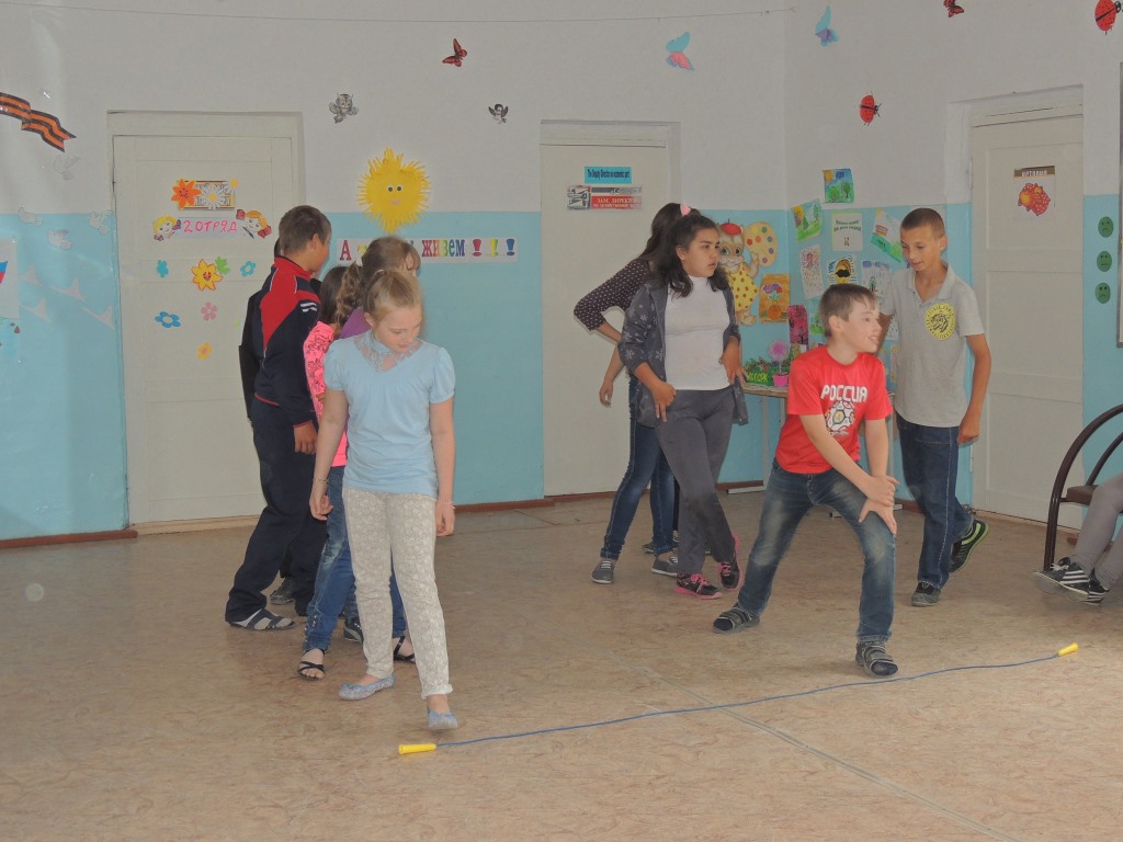 Кроме этого вожатые провели мини-соревнование, участвовали сборные команды из 2 и 3 отрядов, в завершении, которого был поставлен рекорд по прыжкам на скакалке — 134 раза! Рекордсменом стала Малушко Лиза.