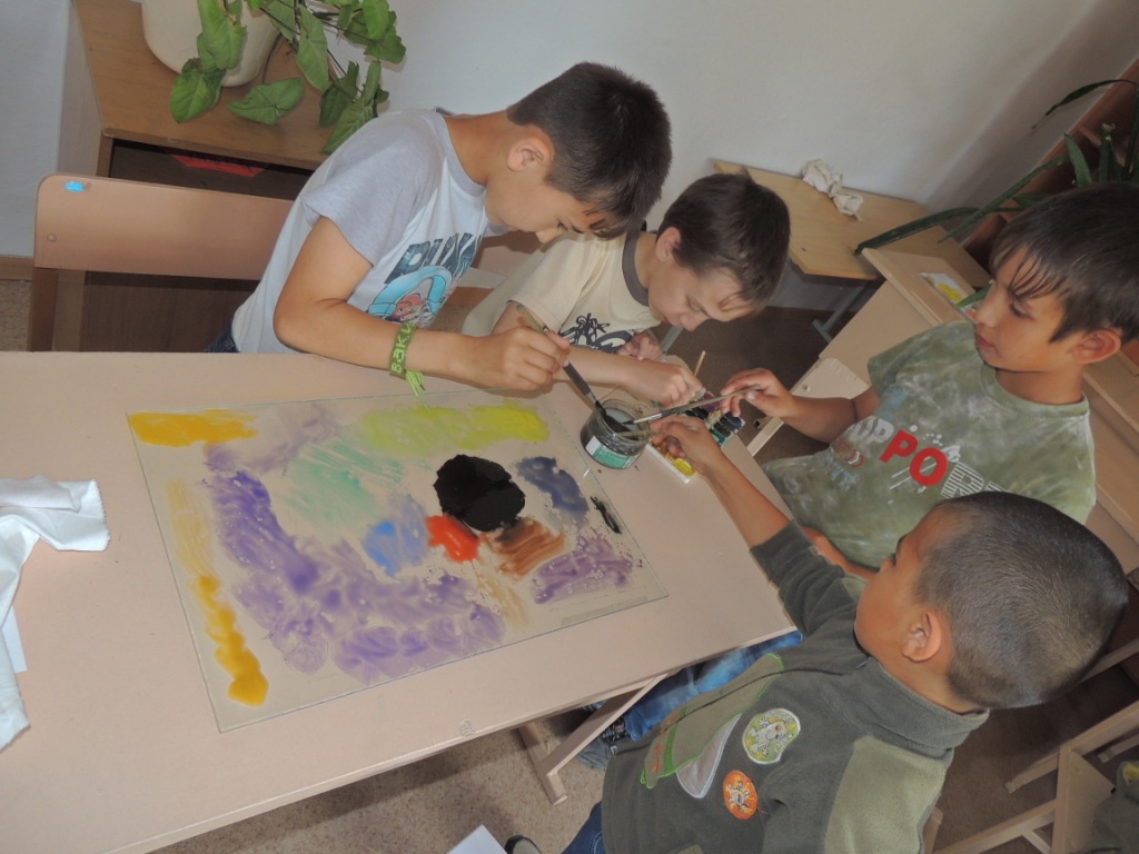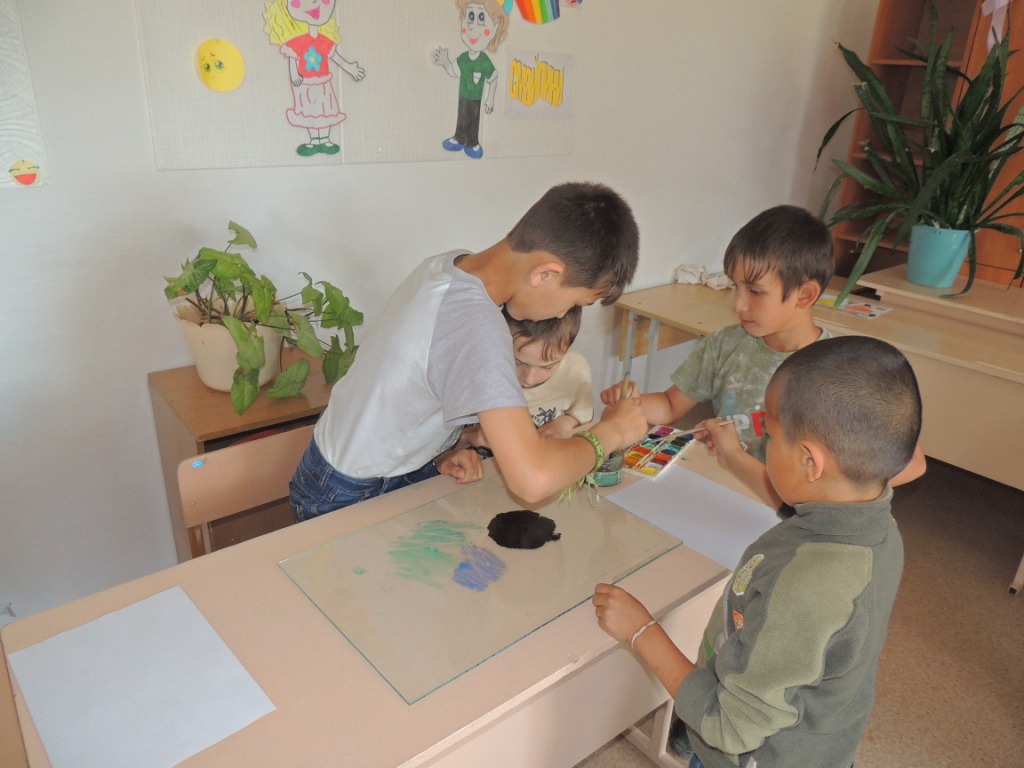 А те, кто остались в лагере тоже не скучали. В этот день прошли мастер-классы «Рисование в технике монотипия», «Аппликация «Символ России», просмотр документального кино «Наше здоровье в наших руках».