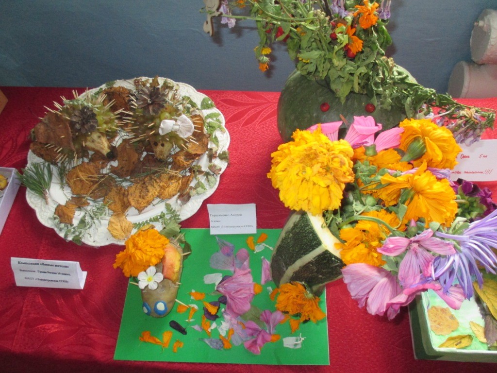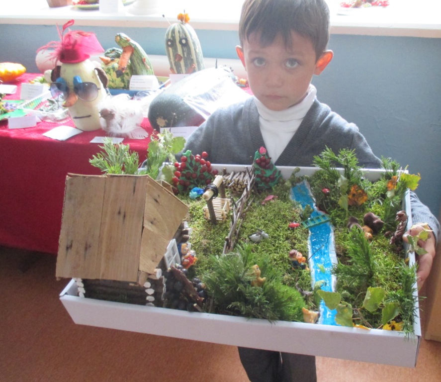 Осень — это славная пора, богатая интересными природными материалами: шишками, разноцветными цветами и листиками, осенние поделки из природного материала можно делать даже из фруктов и овощей. Ребята с удовольствием приняли участие в выставке, поразили оригинальностью своих задумок, техникой выполнения, своеобразием и неповторимостью работ.