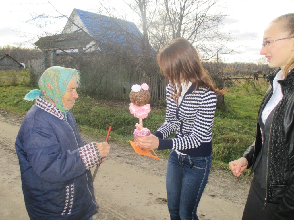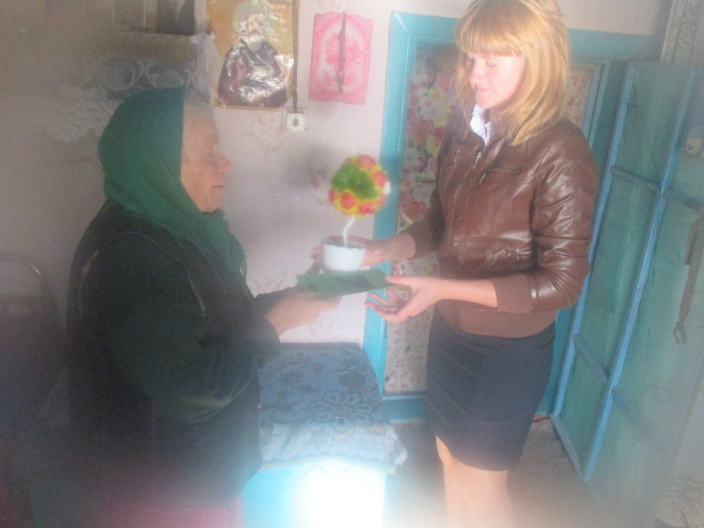 На дворе осень, и кто-то очень точно подметил — Пусть осень жизни будет золотой. Золотой она будет от внимания близких и родных людей, людей живущих рядом. Показать значимость этого праздника мудрости и уважения – есть наш долг. По традиции наши школьники совместно с учителями приготовили для ветерана ВОв и тружеников тыла небольшие подарки и 1 октября поздравили ветеранов. С утра прошла акция «Добрый звонок». Школьную рекреацию украсил стенд «Ух ты — бабушка, ух ты — дедушка!».