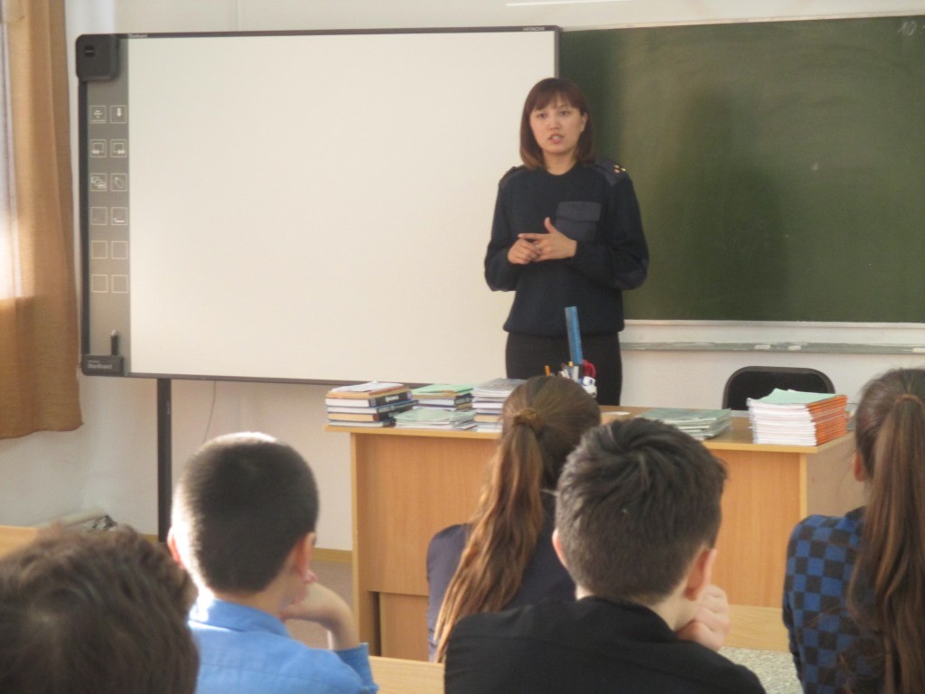10 ноября в школе прошла встреча с инспектором по пропаганде безопасности дорожного движения Ажмуратовой М.М., которая провела беседу с учащимися 1-11 классов на тему «Безопасное поведение на дорогах».