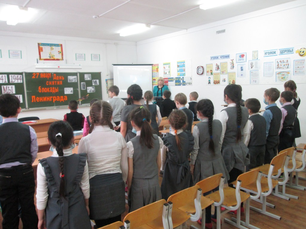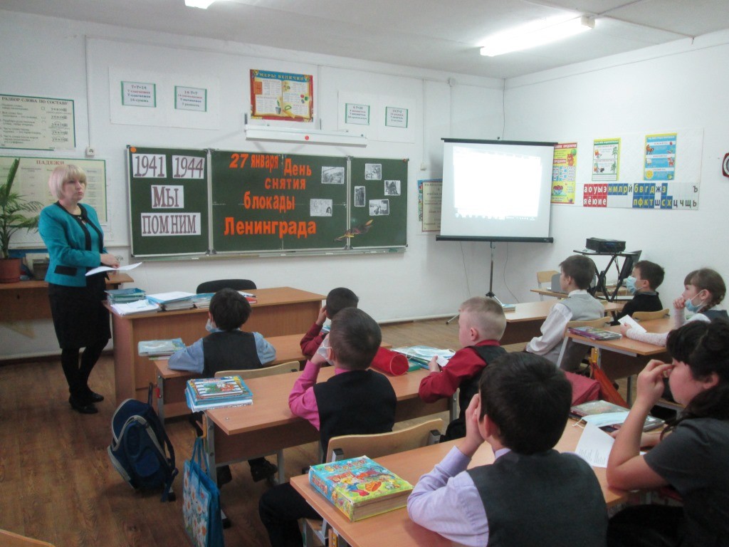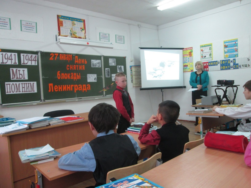 27 января для учащихся начальной школы состоялся урок мужества, посвященный Дню снятия блокады Ленинграда. Дети слушали рассказы о войне, о жизни в блокадном Ленинграде, читали стихи, смотрели документальный фильм о детях блокадного Ленинграда.
