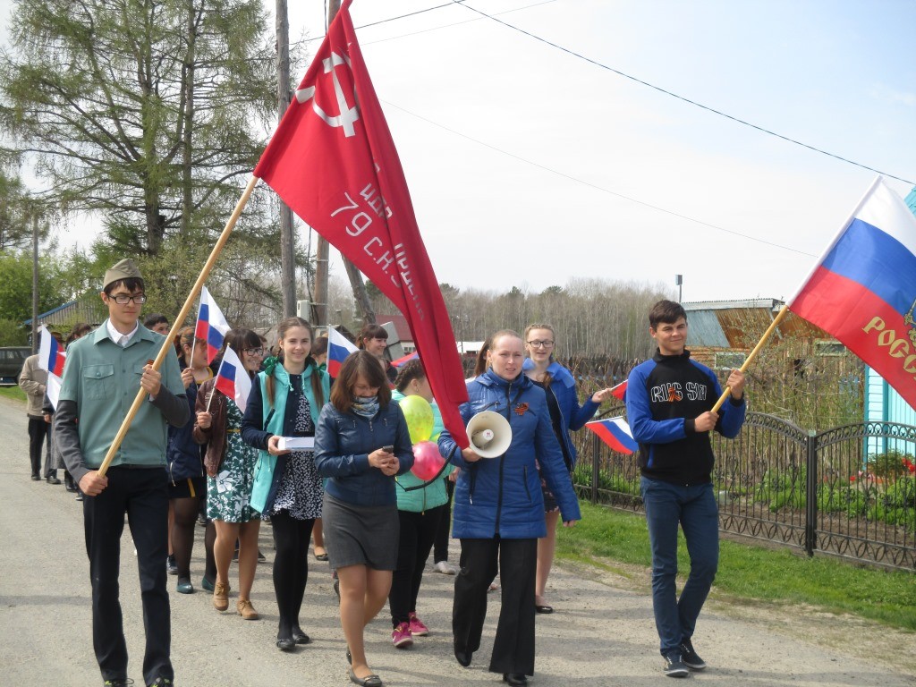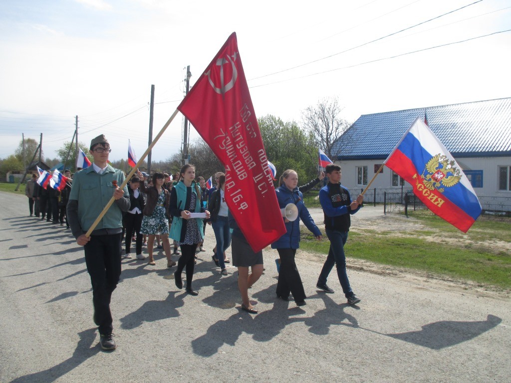 7 мая школьники и педагоги прошли праздничным шествием по улицам с. Новопетрово.