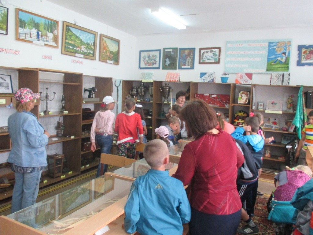 Затем наши экскурсоводы гостеприимно встретили телевизионщиков из Аромашевской школы, которые посетили наш школьный музей, выставку, посвящённую нашему Герою-земляку разведчику Кузнецову Н.И.