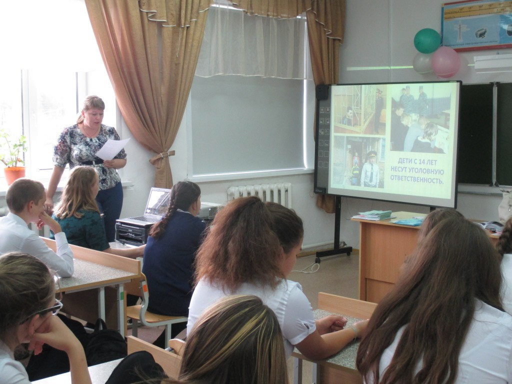 Валентина Николаевна рассказала ребятам об административных правонарушениях, преступлениях и уголовной ответственности за них, когда она наступает, а также провела беседу о вреде алкоголя и табакокурения.