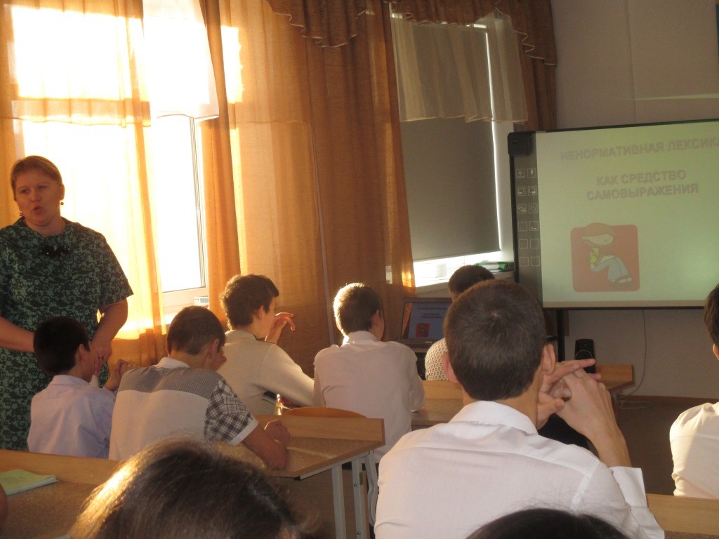 16 января инспектор по охране детства Валентина Николаевна Орлова провела профилактическую беседу с учащимися 9-11 классов по теме «Ненормативная лексика, как средство самовыражения», а также затронула вопросы внешнего вида учащихся, поведения учащихся в школе и общественных местах.