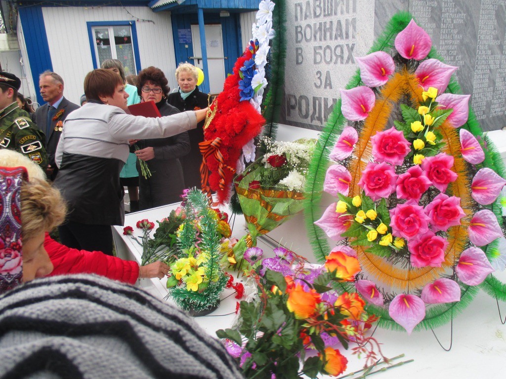 Минутой молчания собравшиеся почтили память погибших в боях за Родину и возложили венки и цветы к обелиску Памяти павшим воинам.