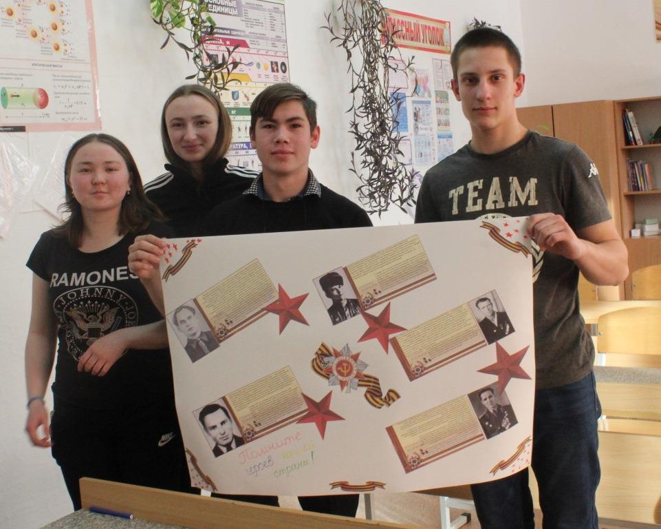 Школьники создали две стенгазеты: «Юные Герои» и «Помните Героев Родины своей». В завершение урока ученица 11 класса сделала вывод: «Мы должны помнить то, что мы потомки Героев»