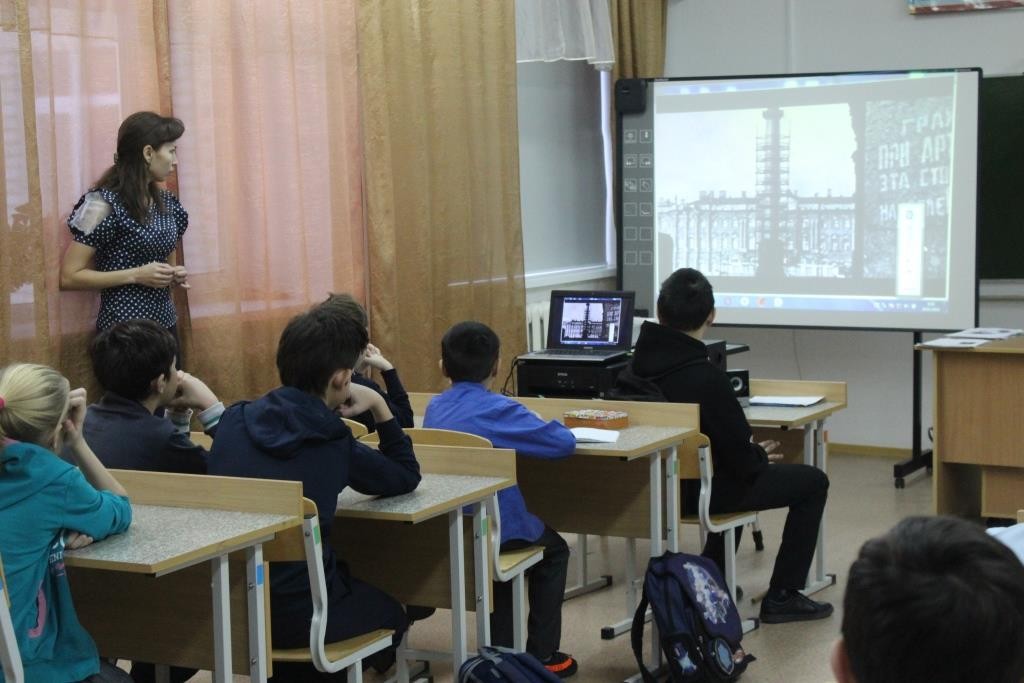Классный руководитель 5 класса: Тишкаева Гульсана Маратовна рассказала школьникам о блокаде Ленинграда. Также ребята просмотрели документальный фильм «Ленинград в дни блокады».