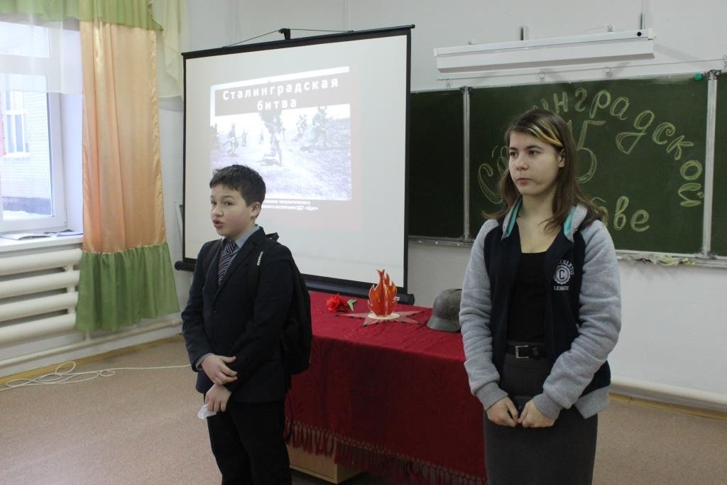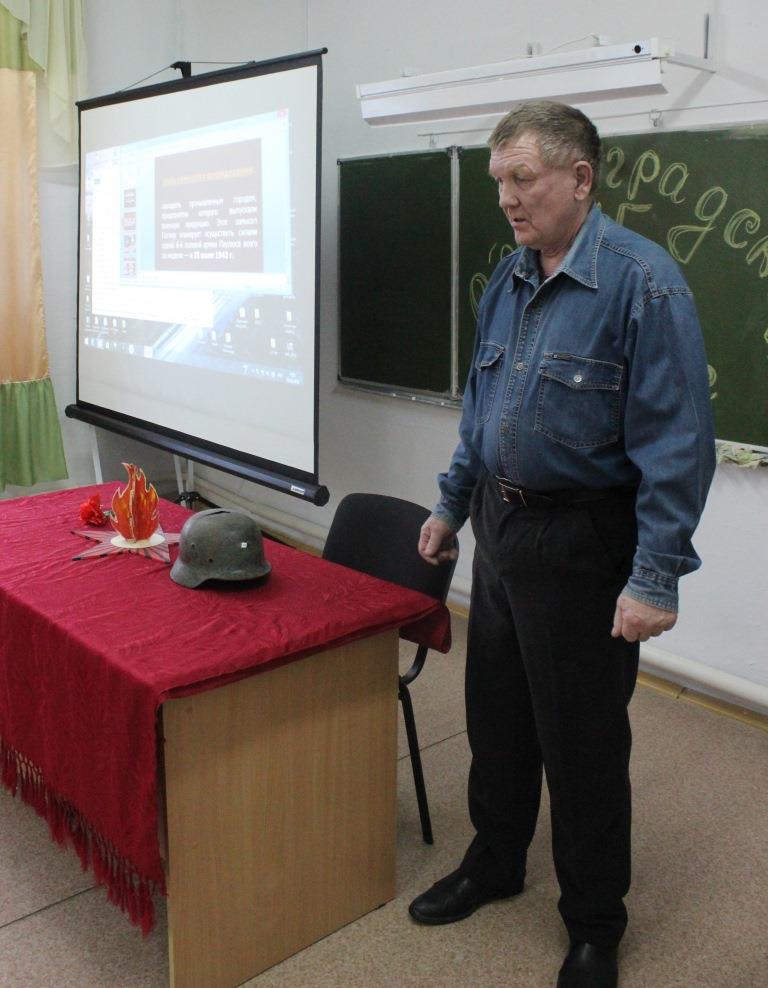«2 февраля 1943 год − День разгрома советскими войсками немецко-фашистских войск в Сталинградской битве». Этот урок мужества школьники запомнят надолго. Много интересных фактов и исторических моментов, рассказанных учителем, были подтверждены воспоминаниями нашего земляка − Владимира Валентиновича Сычёва.