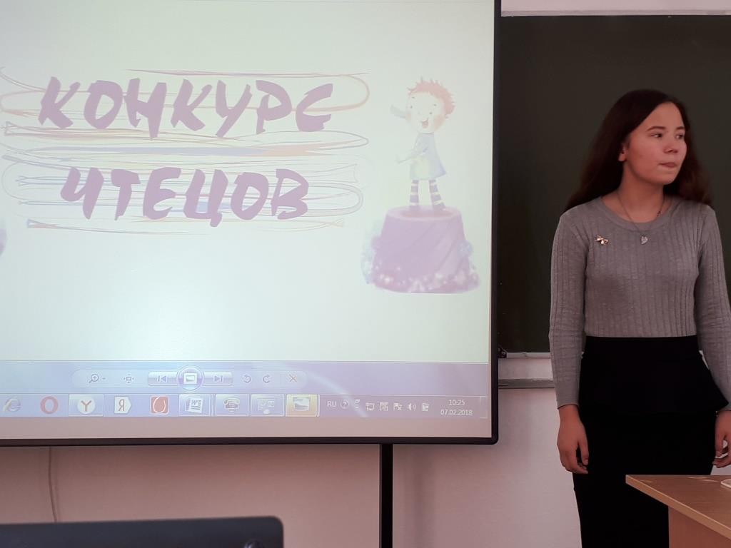 7 февраля в нашей школе состоялся муниципальный этап областного конкурса чтецов «Мы о России будем говорить». Конкурс проводится в рамках реализации проекта «Отечества достойные сыны» государственной программы «Развитие образования и науки» и посвящён Году добровольца (волонтера). Школьники читали стихотворения различных авторов, но предпочтение в основном отдали писателям – любителям Аромашевского района (стихотворение «Родина» Владимира Дерябкина, «Чудный край» Николая Ильича Беронова…).