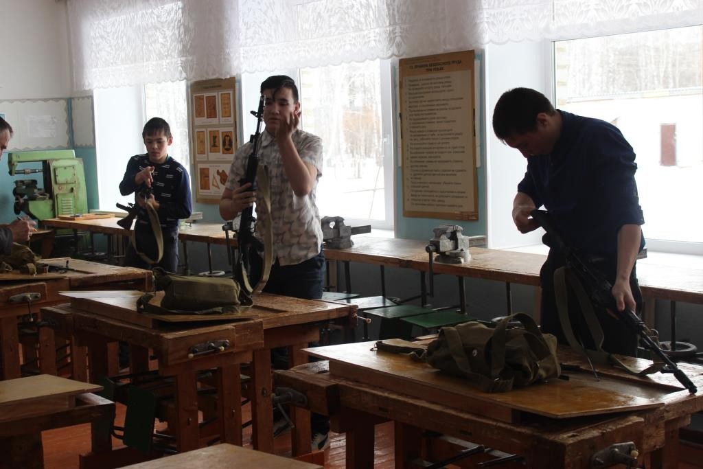 От каждого класса выступил отряд юных солдат. Ребята состязались в силе и ловкости: на скорость одевали противогаз, разбирали и собирали автомат, отвечали на вопросы, участвовали в лыжной эстафете, стреляли по мишеням.